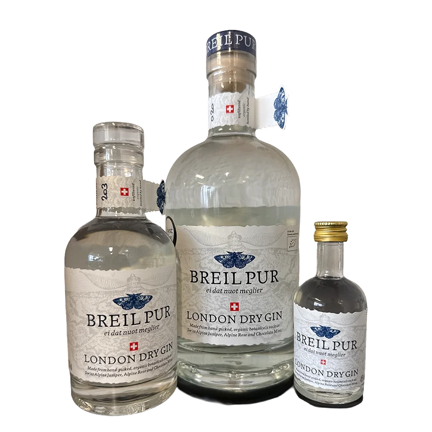 Clar natural ella cumparsa. El nas in caracter schuber e ferm. Divers, denton ulivaus cun in aroma da fretgs e clara tempra da geneivra, la quala harmonisescha carmalont cul matg frestg da menta, citrona ed oranscha. En bucca spetga nus ina explosiun d’aromas da geneivra, frestgadad da fluras intensiva ed ina variaziun da gust cumplexa da cungiments. Il BREIL PUR London Dry Gin semetta cremus sil tschiel dalla bucca e meina tier in gust durabel en bucca. In gin direct cun ina persunalitad autentica. Preparaus sco gin spir, cun in’aua da tonic da premium ni sco coctail.